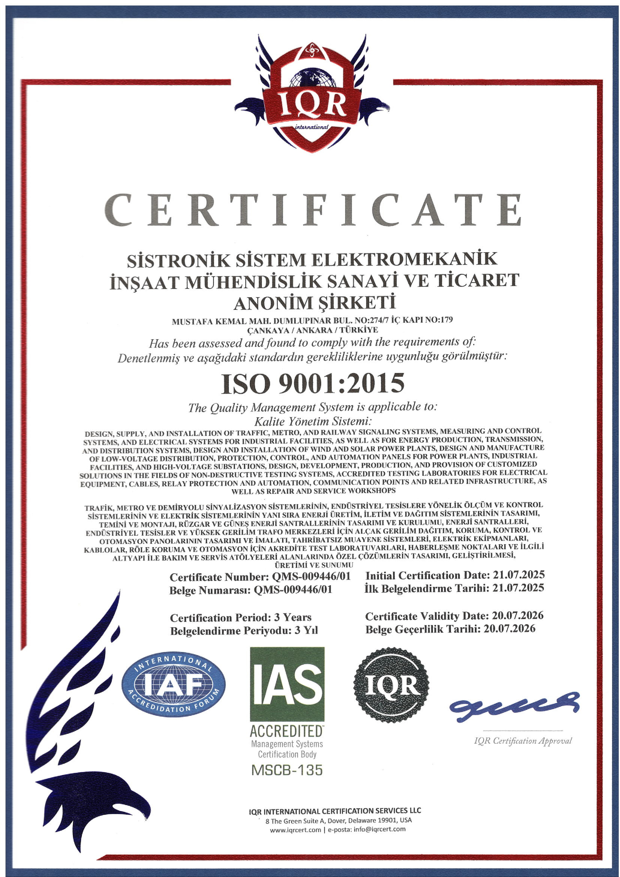 Scada Systems, Interlocking Systems, Command Tables, Grounding Systems, Train Deceleration Systems, Level Crossing Systems